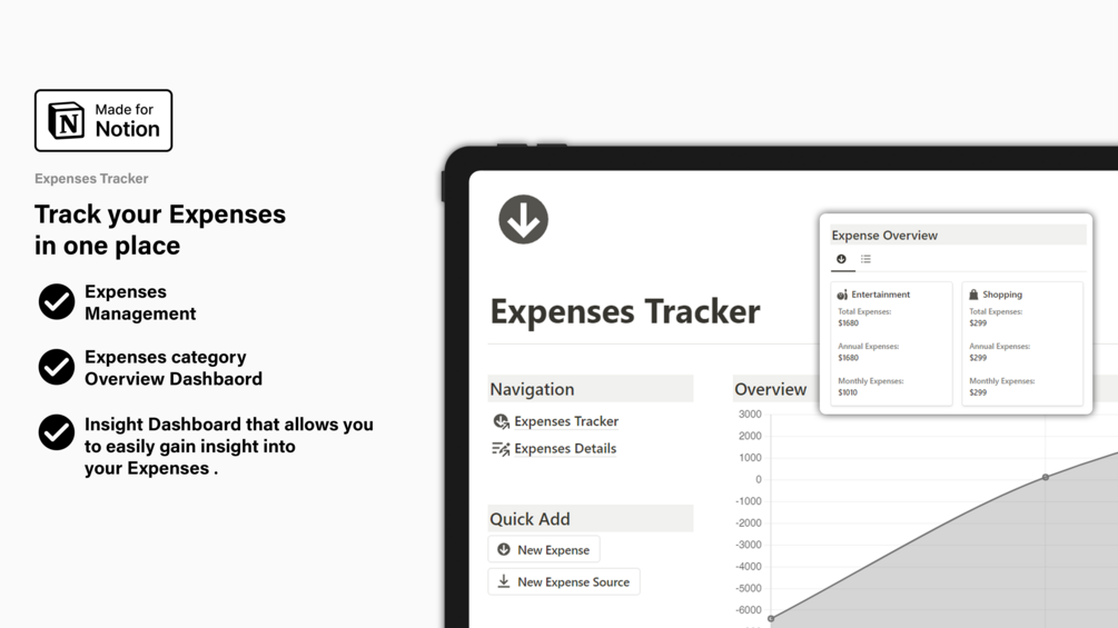 - Expenses Category Overview Dashboard: Visualize and analyze your spending categories at a glance.