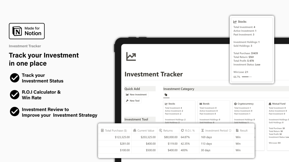 - Investment Management: Effectively manage and organize your diverse investment portfolio.