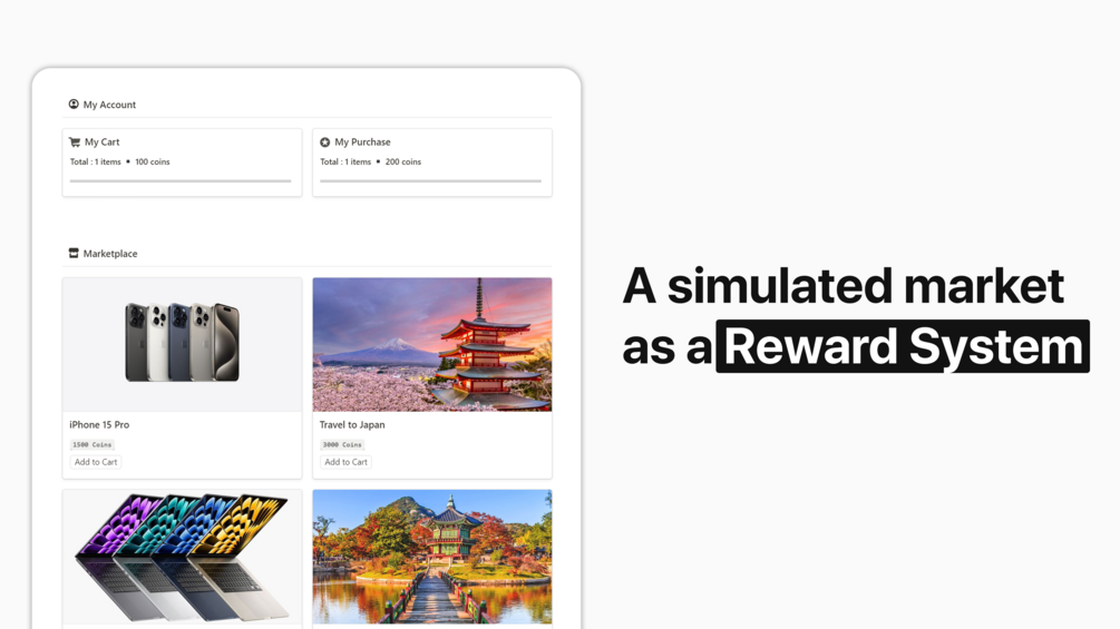 • Reward System: Spend coins in the Market, Hotel & Black Market.