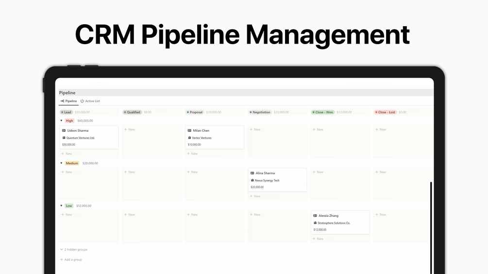 • Pipeline Management System: Organize and visualize your business processes with an efficient pipeline management system.