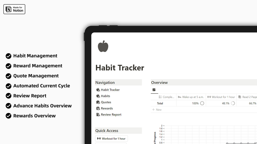 - Fully Automated Daily Tracker: Effortlessly track your daily habits with a fully automated system, reducing the administrative load on your habit-tracking journey.